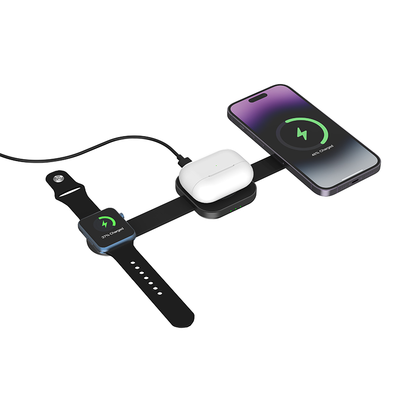 D10# 3-in-1 Desktop Wireless Phone Charger Made of high-quality aluminum alloy, featuring a compact design, it is perfect for travel